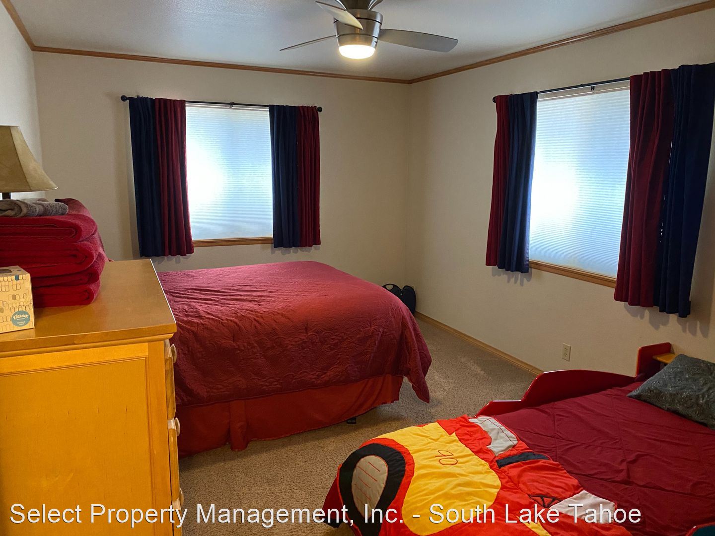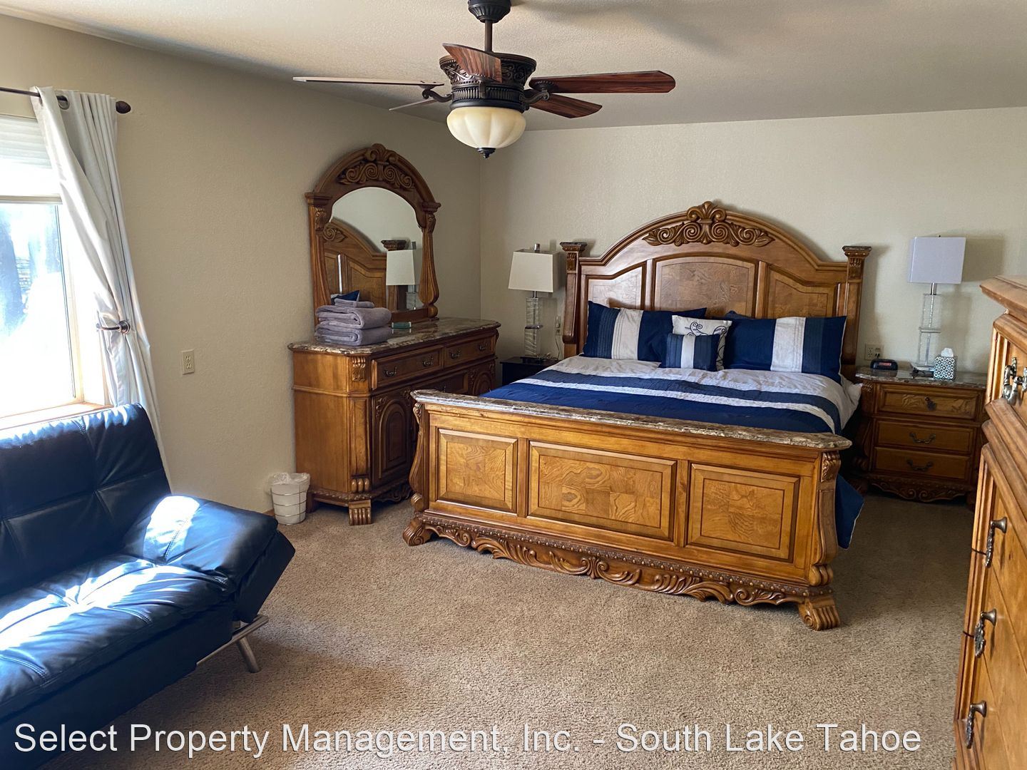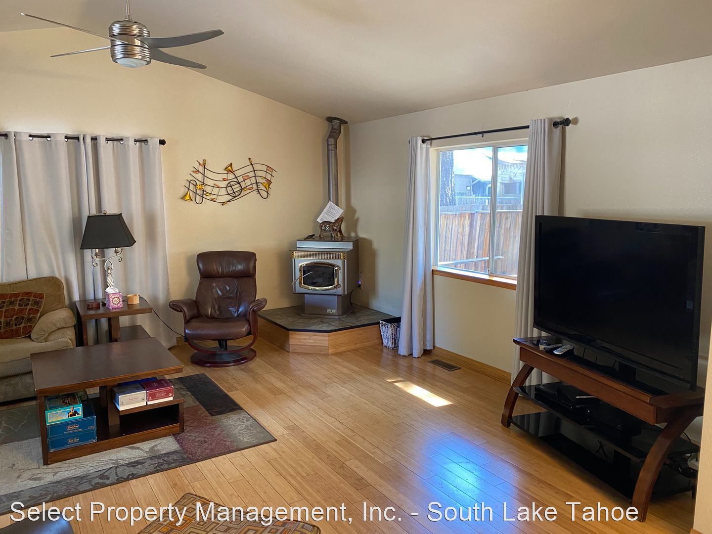 Seasonal Furnished Rental - (1) 3 bed, 2-1/2 bath, 2,316 sq. ft. luxury home, (2) minutes to Heavenly, Casinos or Tahoe Lake, (3) on bike trail and 1 tandem bike, NEW; 6 BEACH TOWELS (4) private fenced front and back yards, (5) free WIFI, (6) pellet stove, (7) BBQ, (8) steps to river, (9) living room has 55' and master bedroom has 46' HDTV with HD cable service including HBO, Cinemax & the Sports package, (10) laundry room with washer/dryer, (11) dishwasher, (12) 2 car garage, (13) backyard deck with views of miniature golf course and propane firepit, (14) one king, two queens, two futons and one twin bed (also 1 play pen), and (15) brand new appliances, fixtures and furniture. Partial Air conditioning in the summer.