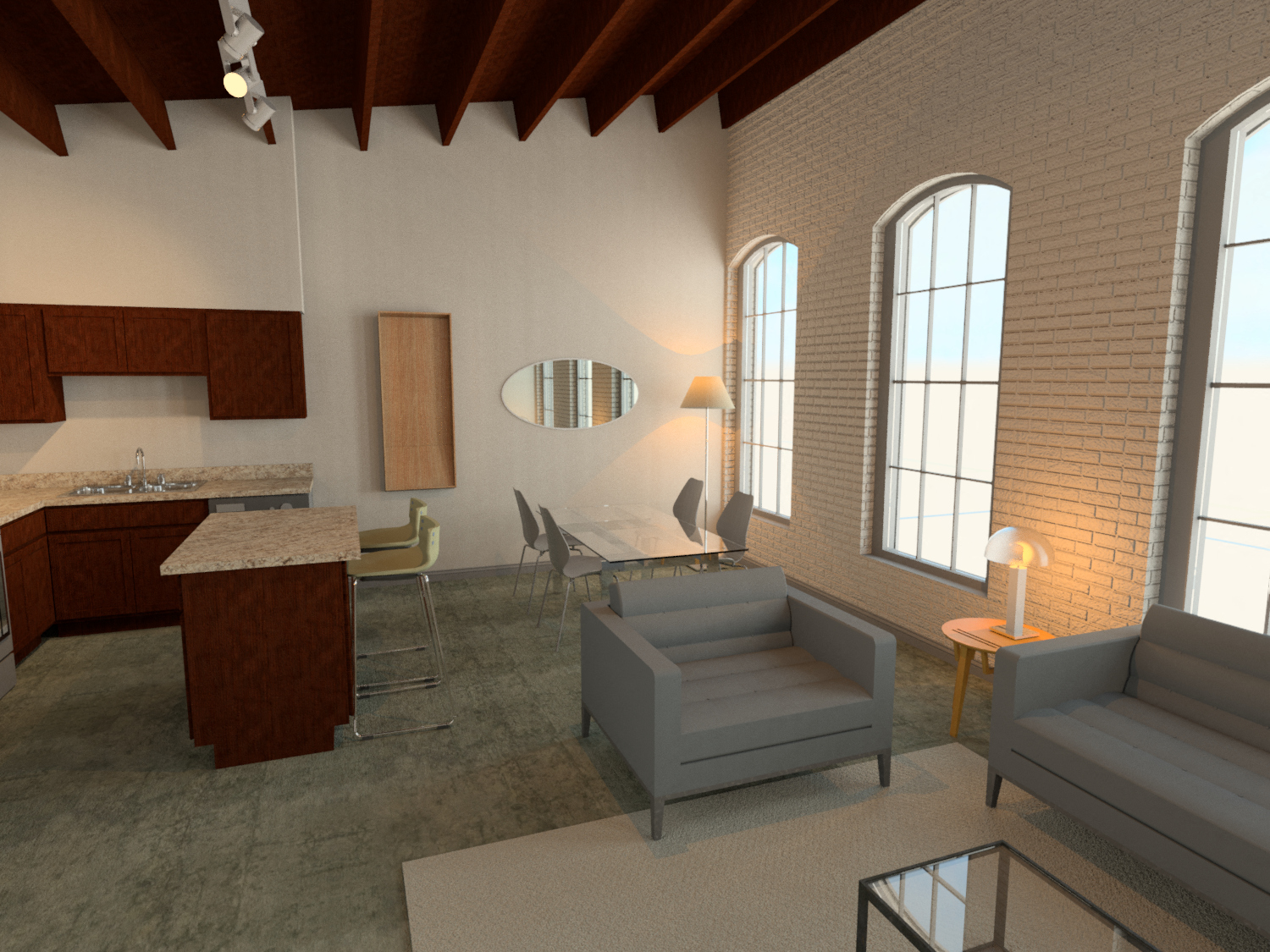 • Easy-clean concrete floors